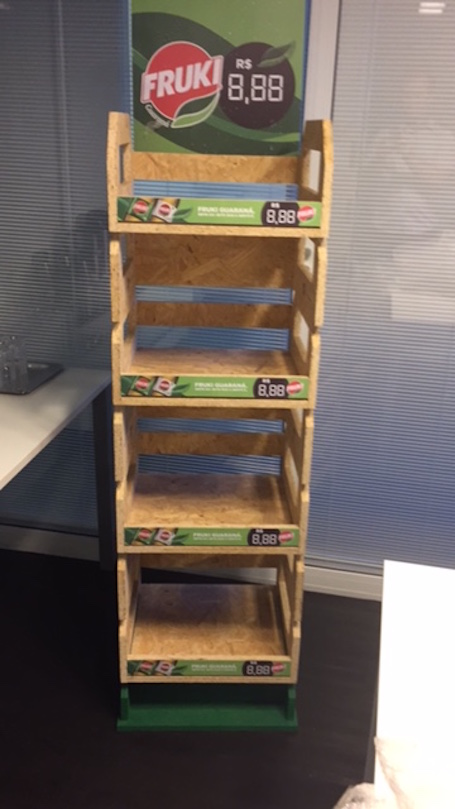 A Pino produziu dezenas de expositores em OSB com impressão UV para a marca Fruki, do Rio Grande do Sul. Vejam nas imagens dos engradados no post abaixo, todos trabalhados na marcenaria completa que a Pino dispõe em seu parque. Lá são produzidos também tótens, displays, expositores, pequenos móveis para cenários e o que a imaginação dos clientes ousar produzir.