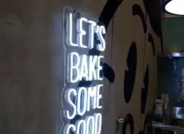 Toda a sinalização deste café foi produzida e instalada pela Pino usando adesivos, led neon e letras caixa.
