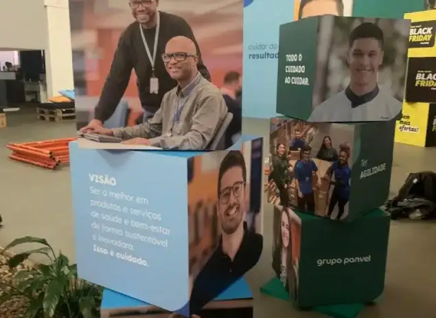 Cubo em Polionda, Windbanners, Banner Rollup, Display em MDF – bomba de combustível.