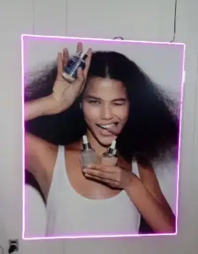Projeto de decoração e sinalização de loja com adesivo, quadros e neon