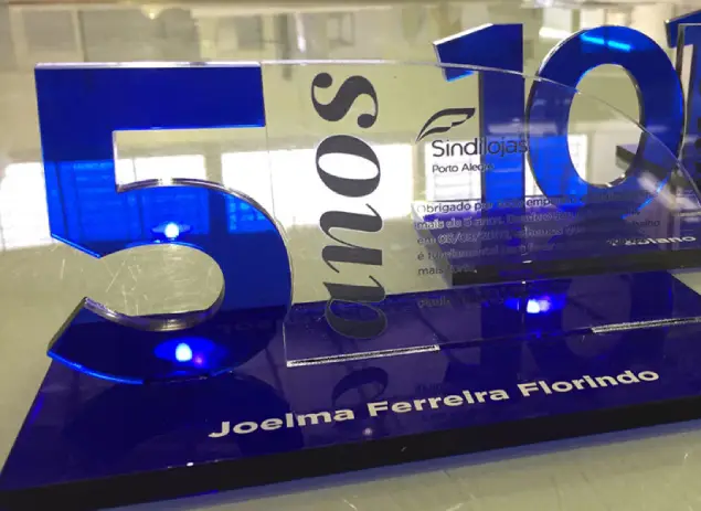 O acrílico quando cortado em laser, fica com lindo acabamento. Ótimo para fazer troféus como este.